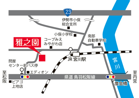• JR 宮川駅から徒歩約15分