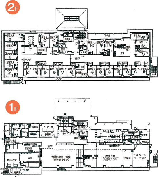 食堂、浴室、機械浴室、機能訓練室、医務室、相談室、面談室